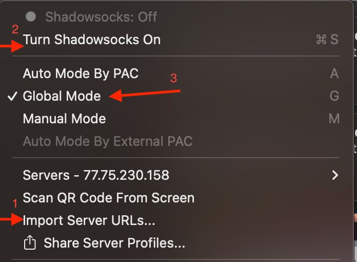 Включите VPN, нажав на «Turn Shadowsocks ON»;