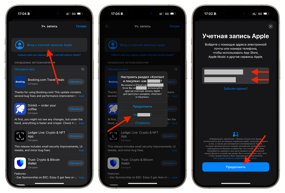 6. Введите логин и пароль от нашего временного аккаунта App Store (данные возьмите выше)